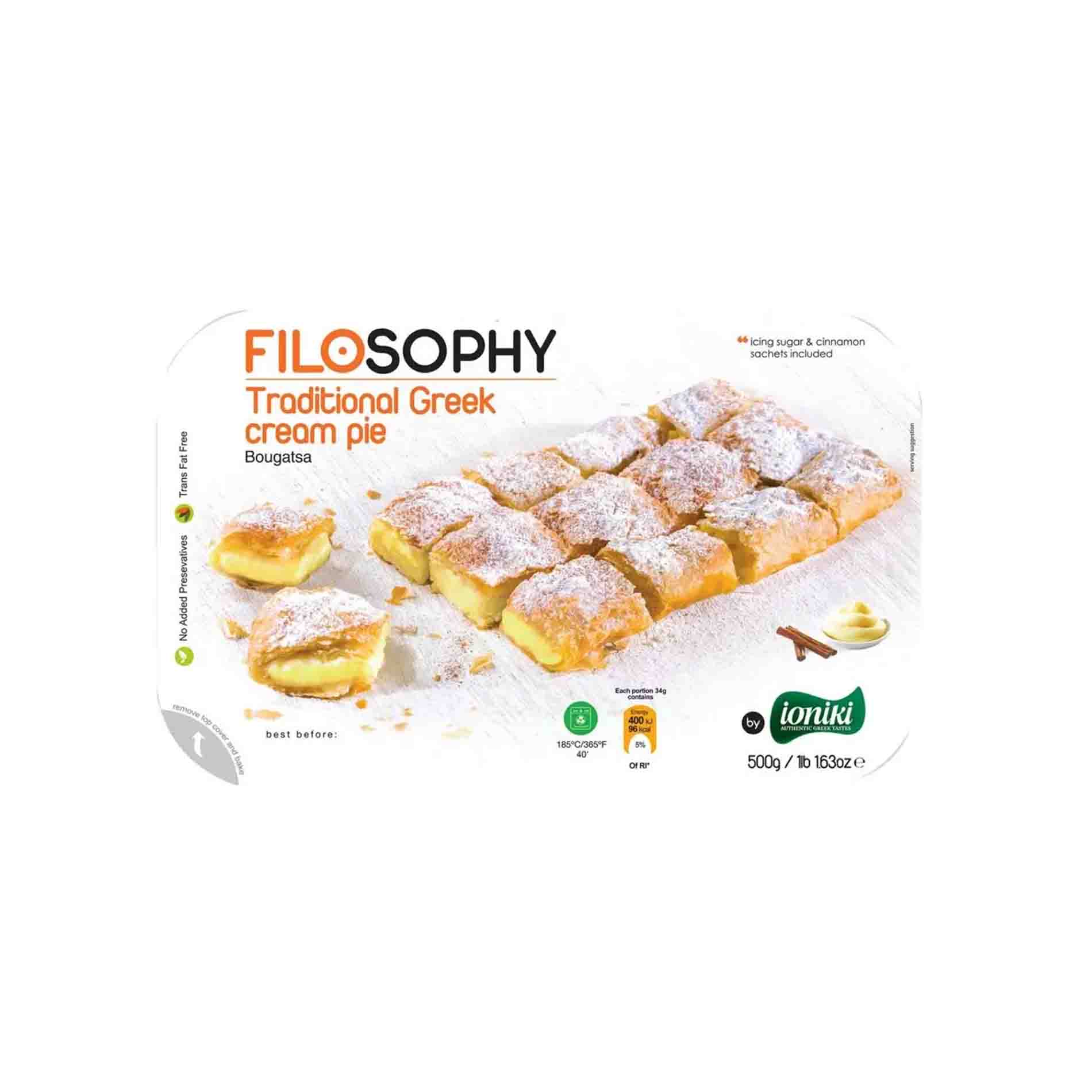 Тонкое многослойное хрустящее тесто «фило», наполненное бархатным заварным кремом, тает во рту.