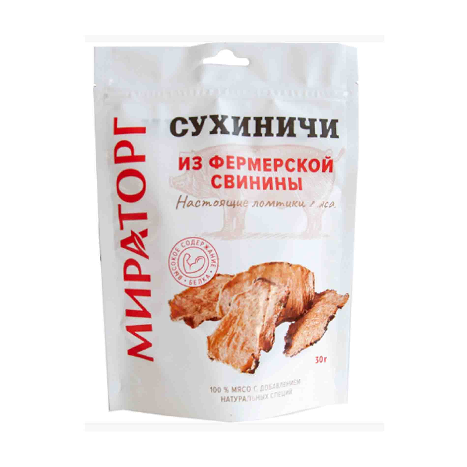 Сухиничи из свинины классические – это вариант для тех, кто предпочитает сытный перекус. Тонкие слайсы приготовлены из свинины собственного производства, богаты белком и быстро утолят голод.