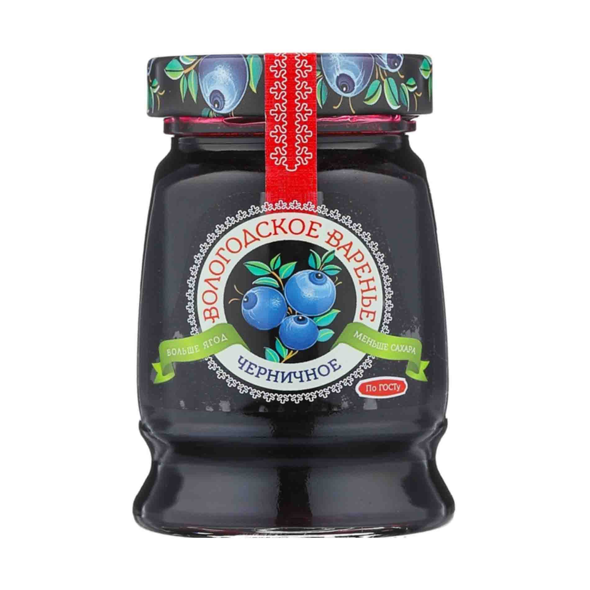 Варенье Вологодское Домашнее Черничное - это 100% натуральный продукт, приготовленный по ГОСТу из отборной черники и сахара без добавления искусственных ароматизаторов, красителей, консервантов.