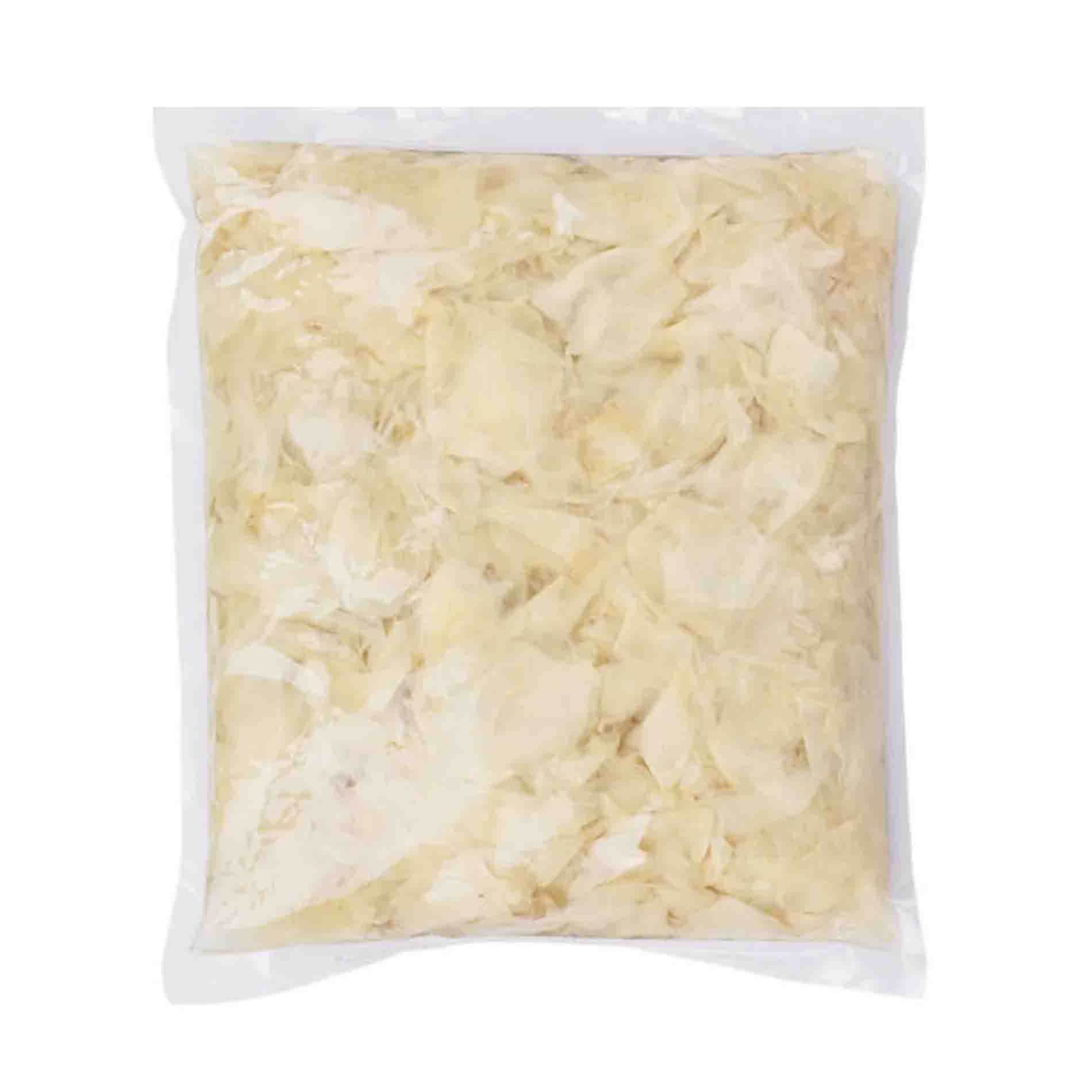 Маринованный имбирь белого цвета подается как дополнение к суши и роллам, в японской кухне его используют для подготовки к употреблению следующего блюда, он освежает полость рта и очищает вкусовые рецепторы.