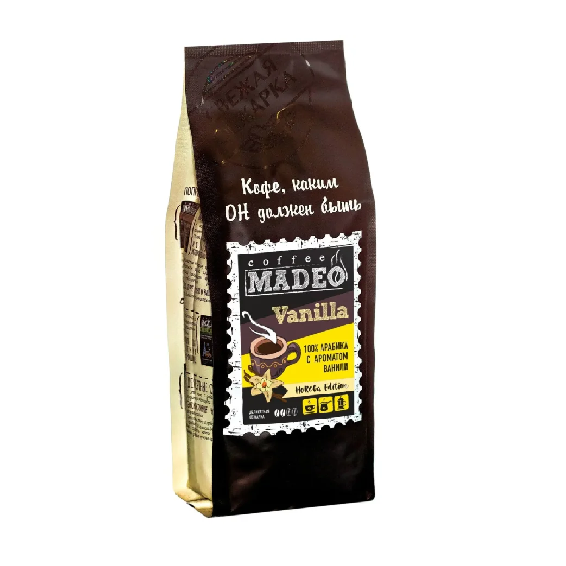 Насыщенный сладкий аромат ванили, нежность сливок, горечь шоколада и богатый вкус натуральной арабики перенесут вас в уютное французское кафе. Кофе MADEO Французская ваниль сделает праздником даже самый скромный завтрак.