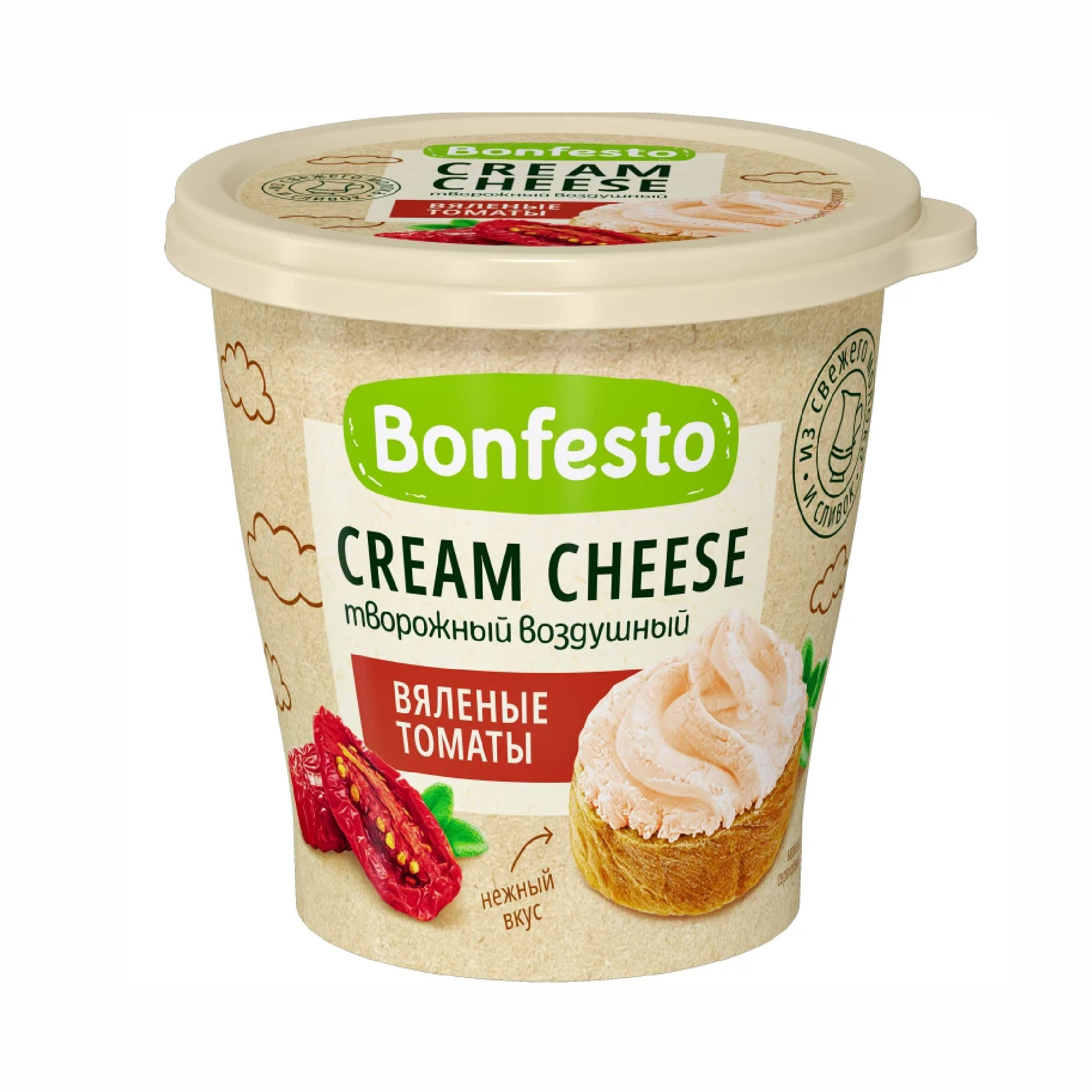 Сыр Bonfesto творожный Cream Cheese воздушный «Вяленые томаты» — сливочно-творожный кремчиз с лёгкой консистенцией, свежим сливочным ароматом и пикантным вкусом вяленых томатов.