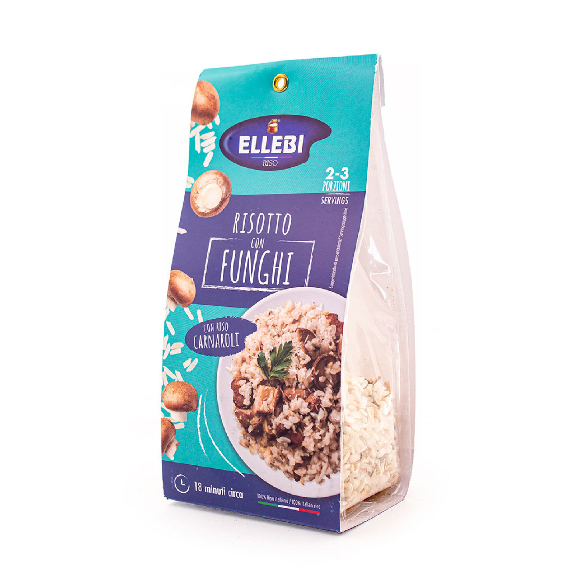 Вам потребуется добавить только оливковое масло и белое вино. Ризотто с грибами на основе риса Карнароли ELLEBI отличается насыщенным грибным вкусом и кремовой текстурой.