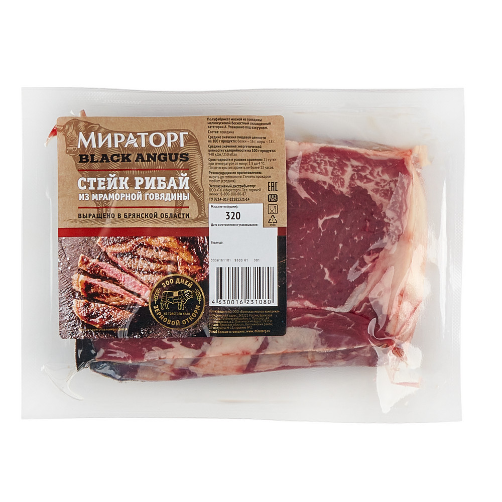 Говядина стейк Рибай Prime охл б/к в/у Black Angus Мираторг ~1 кг