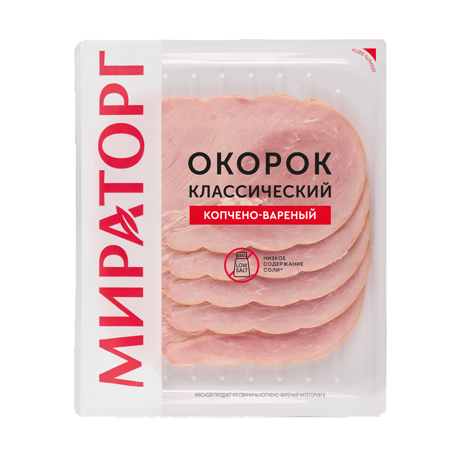 Копчено-вареный окорок «Классический» изготавливается из отборного свиного окорока и обладает изысканным мясным вкусом, подчеркнутым тонким ароматом копчения и специально подобранными специями.