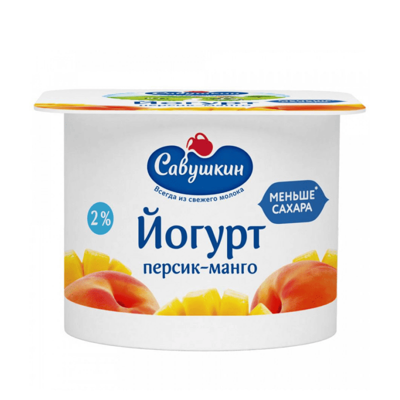 Йогурт Савушкин персик-манго 2% 120г п/ст Россия