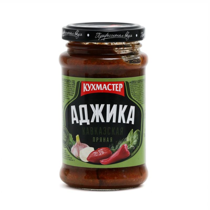 Аджика Кухмастер Кавказская Пряная представляет собой натуральный продукт, созданный по традиционным рецептам кавказской кухни. В составе аджики вы найдете только качественные ингредиенты, такие как перец красный, кориандр, пажитник греческий, лук, чеснок, томаты свежие, кинза, петрушка, укроп и регулятор кислотности – уксусная кислота.