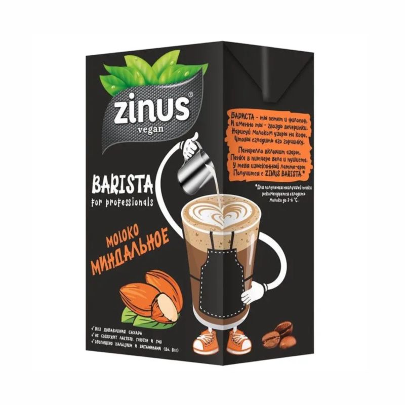 Zinus BARISTA – это миндальное молоко разработанное специально для кофе, без добавления сахара, красителей и консервантов. Не содержит лактозу, глютен и ГМО. Имеет жирность 2% и нейтральную кислотность pH = 7, что позволяет получить великолепную пенку, которая отлично взбивается. Миндаль – это природный источник энергии, витаминов и микроэлементов.