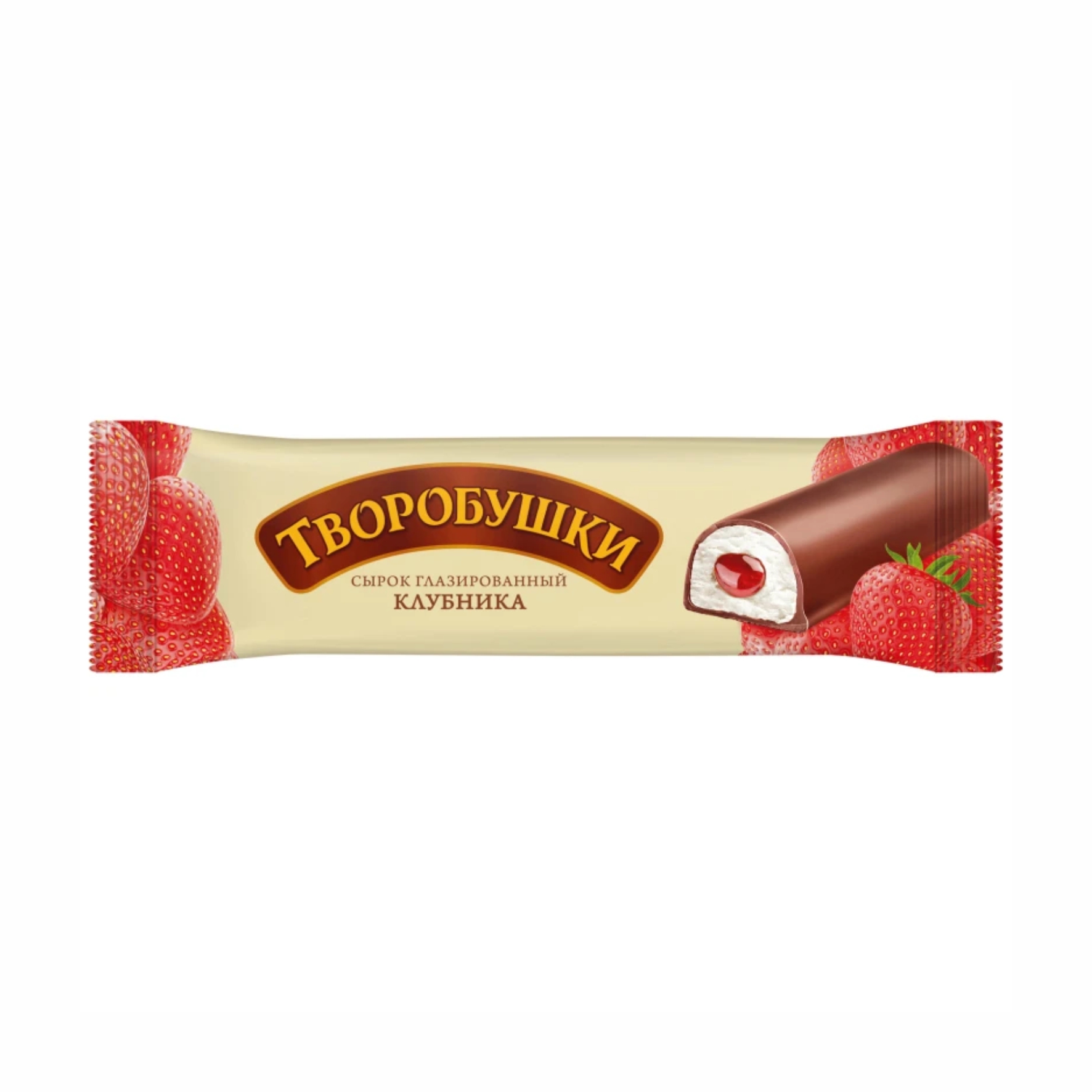 Состав: творог, глазурь кондитерская какаосодержащая молочная (сахар, заменитель масла какао лауринового типа (кокосовое масло рафинированное дезодорированное гидрогенизированное), молоко сухое обезжиренное, сыворотка молочная сухая, какао-порошок, эмульгаторы – соевый лецитин, эфиры полиглицерина; ароматизатор), начинка - фруктовый наполнитель «Клубника» (сахар, клубника, вода, земляника, цитрусовые волокна, загуститель – пектин, фруктовый и овощной концентраты – редис, яблоко, черная смородина; регуляторы кислотности – лимонная кислота, цитрат натрия 3-замещенный, цитрат кальция 3-замещенный; дикрахмаладипат ацетилированный, натуральный ароматизатор), сахар, сыр творожный, масло сладкосливочное, ароматизатор.