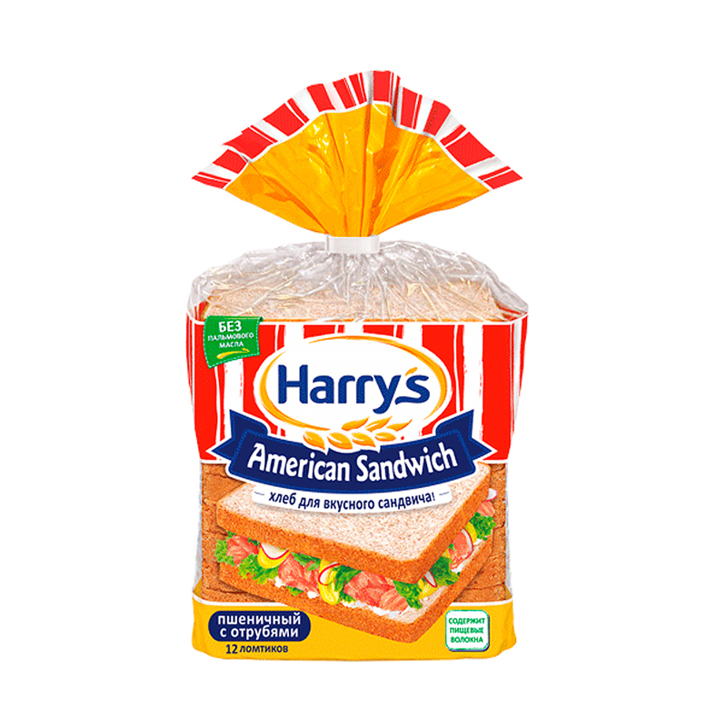 Хлеб сэндвичный пшеничный с отрубями Harry`s 515гр Россия