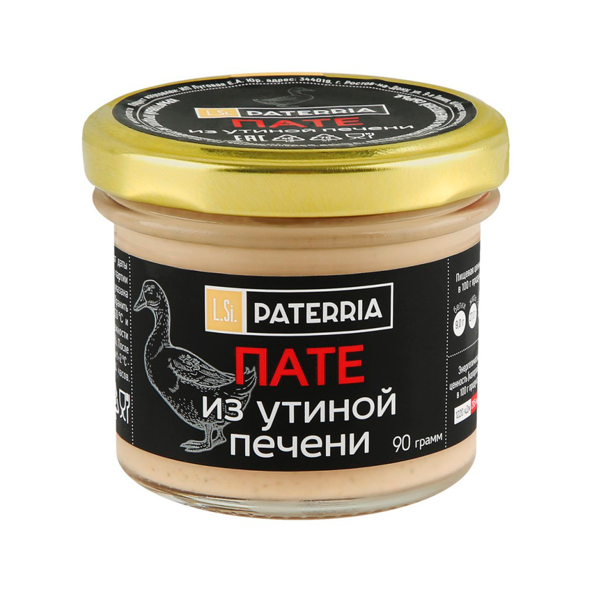 Пате из утиной печени с инжиром 130гр Россия - паштет бронзового цвета, с запеченной коричневой корочкой, консистенции сливочного масла, с крупинками инжира. Этот паштет мы создали для истинных ценителей и гурманов! Уникальный в своей идее и изысканный по составу — утиная печень в сочетании с томленным в белом вине инжиром и авторским набором специй. Подавайте его с белым или красным вином на ужин или доверьте ему ваше утро, с хрустящим багетом и чашкой согревающего латте макиато.