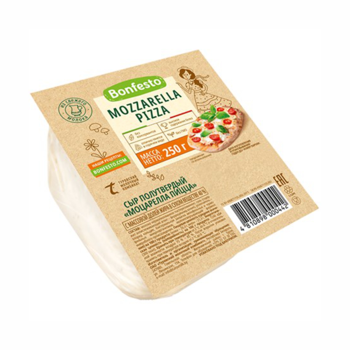 Mozzarella Pizza Bonfesto обладает нейтральным вкусом и волокнистой структурой, благодаря которой сыр отлично плавится и тянется под воздействием температуры. Идеально подходит для приготовления горячих блюд.