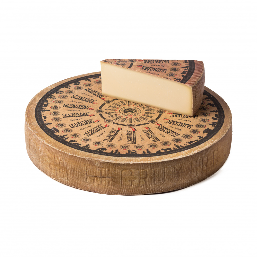 Сыр Грюйер пещерный AOP твердый Margot Fromages 49% - это швейцарский сыр, произведенный из коровьего молока, с выдержкой в пещерах, что придает ему особый вкус и аромат. Он имеет насыщенный сливочный вкус с ореховыми нотками и цветочный, фруктовый аромат с пикантными оттенками. Сыр имеет сертификат AOP, подтверждающий его происхождение и аутентичность.