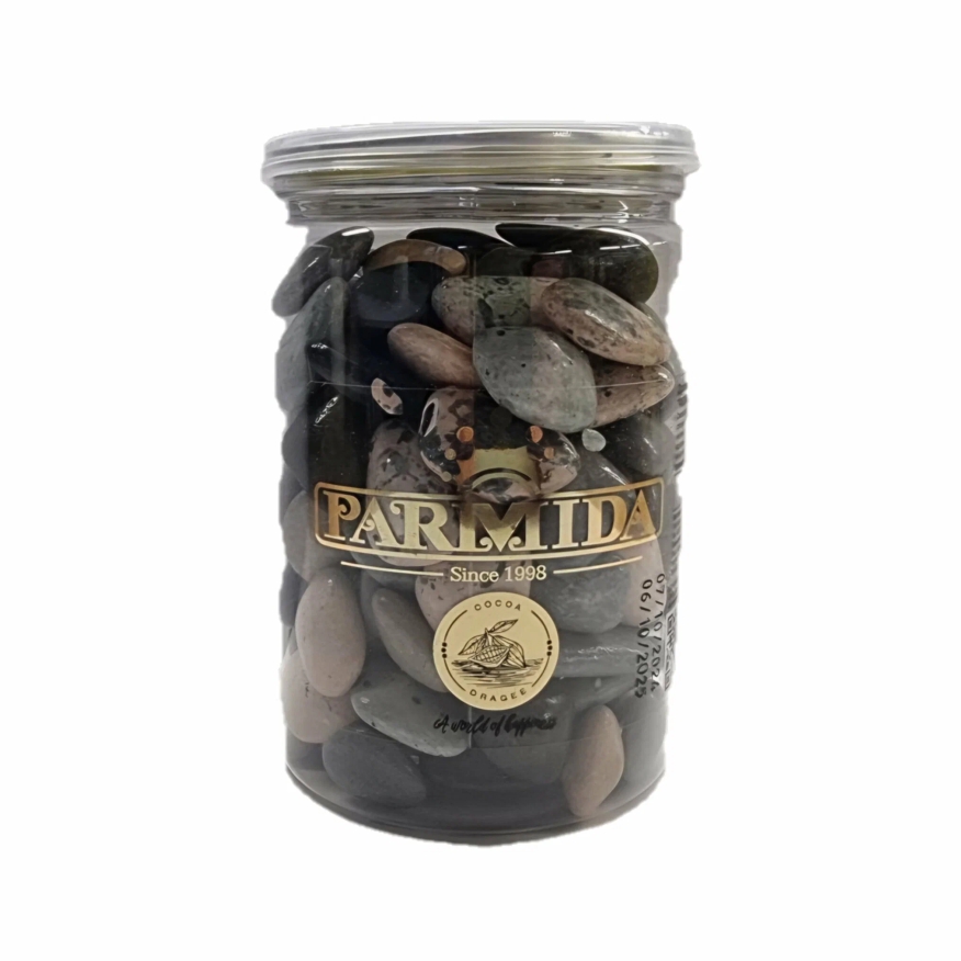 Бесподобное шоколадное драже “Parmida” в глазури в форме морских камешков. Нежный, молочный, тающий шоколад, станет изысканным дополнением к чашечке ароматного чая. Идеально для декора кондитерских изделий.