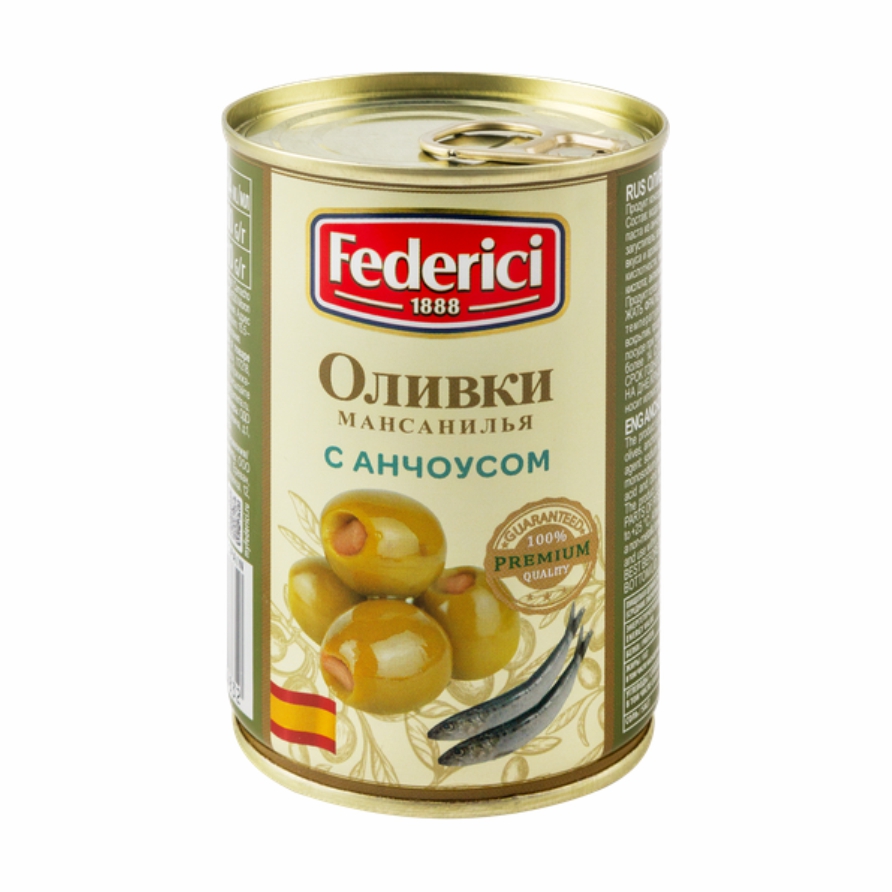 Оливки с анчоусом FEDERICI 300гр ж/б 1/12 Италия