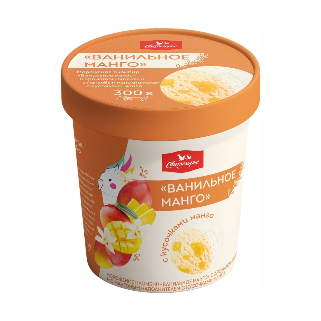 Мороженое пломбир ванильное манго 15% Свитлогорье 320гр 1/8 Россия