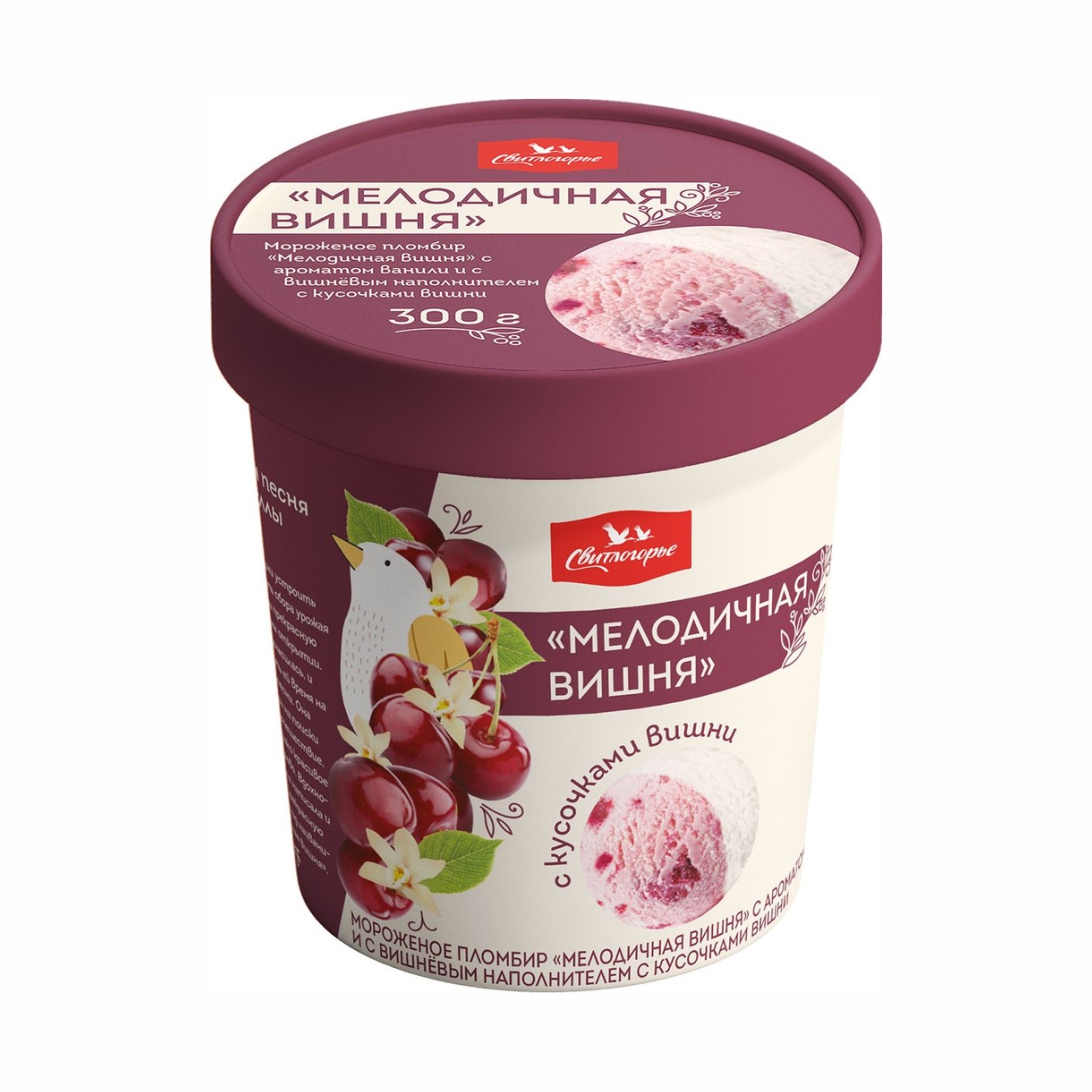 Мороженое пломбир мелодичная вишня 15% Свитлогорье 300 г 1/8 Россия