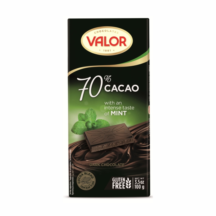 Шоколад горький 70% с мятой VALOR 100 г Испания