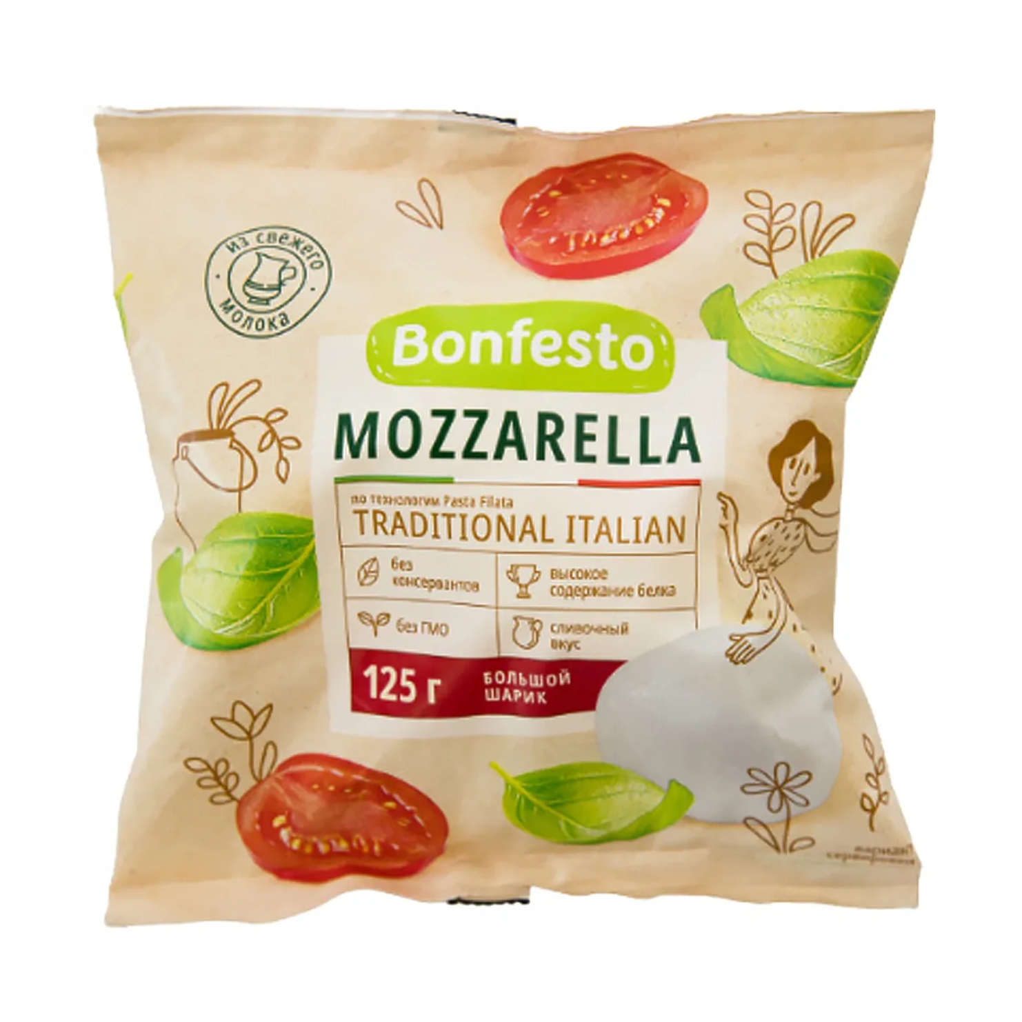 Сыр Моцарелла шарик Bonfesto 45% 125гр большой шарик 1/6 шт Беларусь ЗАМОРОЗКА