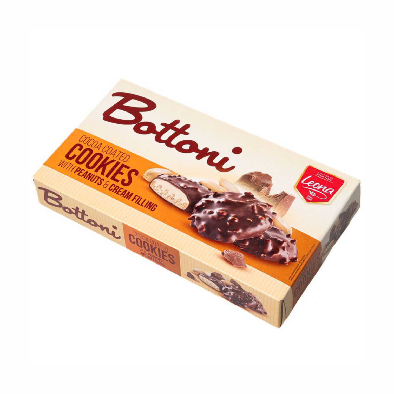 Печенье BOTTONI с арахисом и кремовой начинкой, покрытое шоколадом Leona 120г 1/16 Македония
