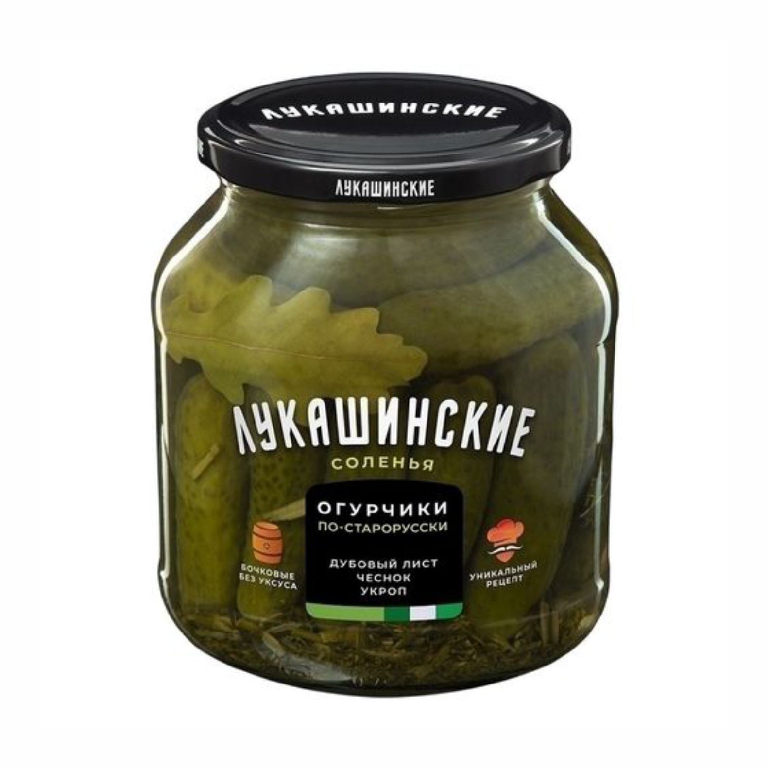 Огурчики соленые по-старорусски с дубовым листом Лукашинские 670гр ст/б 1/6 Россия