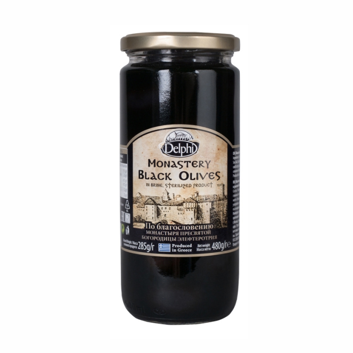 Маслины с/к Монастырские в рассоле DELPHI 480гр ст/б 1/12 Греция