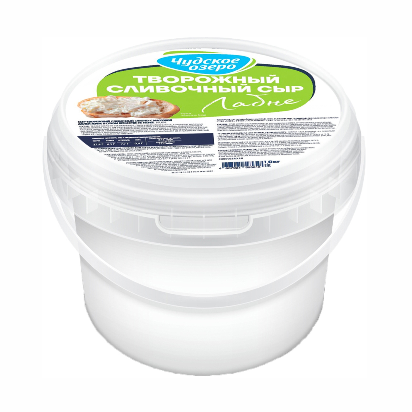 Сыр творожный Лабне Чудское озеро 55% 1кг 1/6 Россия