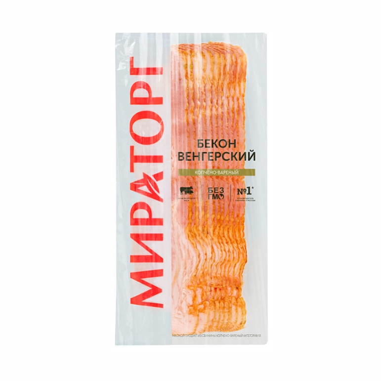 Бекон в/к Венгерский охл нарезка Мираторг в/у 200г 1/10 Россия