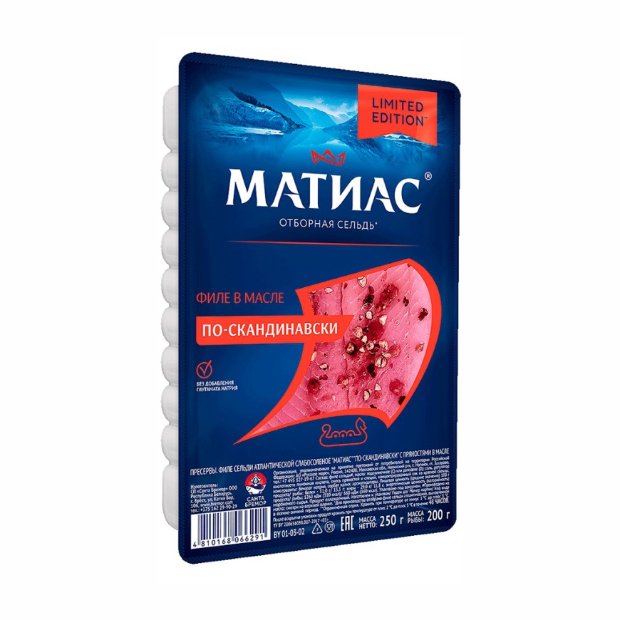 Филе сельди с/с Матиас по-скандинавски с пряностями в масле Санта Бремор 250г 1/6 Россия
