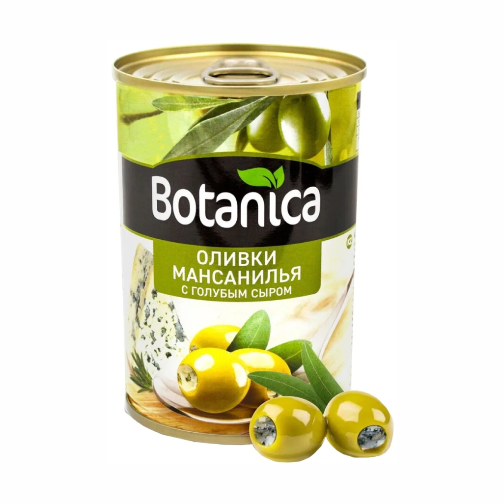 Оливки б/к с сыром голубая плесень BOTANICA 300 мл ж/б 1/12 Испания