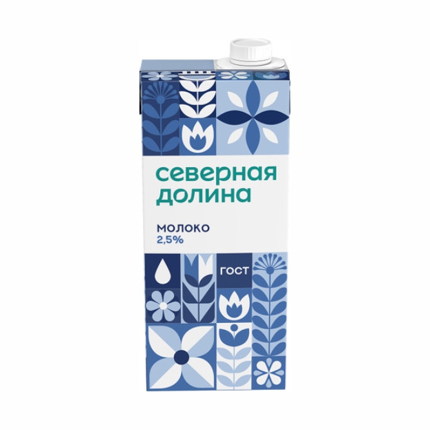 Молоко 2,5% Северная долина 950г с крышкой Россия