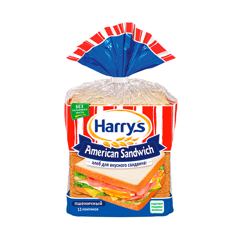 Хлеб Harrys American Sandwich пшеничный 470г - это идеальная основа для вкусных бутербродов и сэндвичей! Он относится к категории Pain de mie (в переводе с французского - хлебный мякиш), поэтому перед употреблением его рекомендуется поджарить в тостере или на гриле. В упаковке вы найдете 12 ломтиков одинаковой квадратной формы. Они отлично стыкуются друг с другом, за счет чего вы можете делать сложные и многоярусные сэндвичи. Их можно брать с собой в дорогу, на пикник или на работу, давать ребенку в школу, подавать гостям на вечеринках и фуршетах, употреблять в качестве завтрака или сытного перекуса. Хранится при комнатной температуре почти 3 месяца.