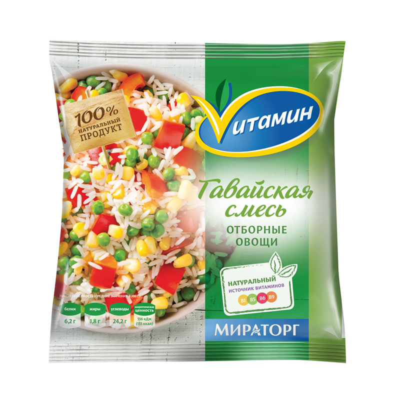 Яркая и аппетитная смесь из отборного риса, кукурузы, зеленого горошка и сладкого перца. Смесь заморожена по технологии шоковой заморозки, сохраняющей богатый вкус и полезные качества свежих овощей. Наслаждайтесь! Состав: Рис, кукуруза, горошек зеленый, перец сладкий