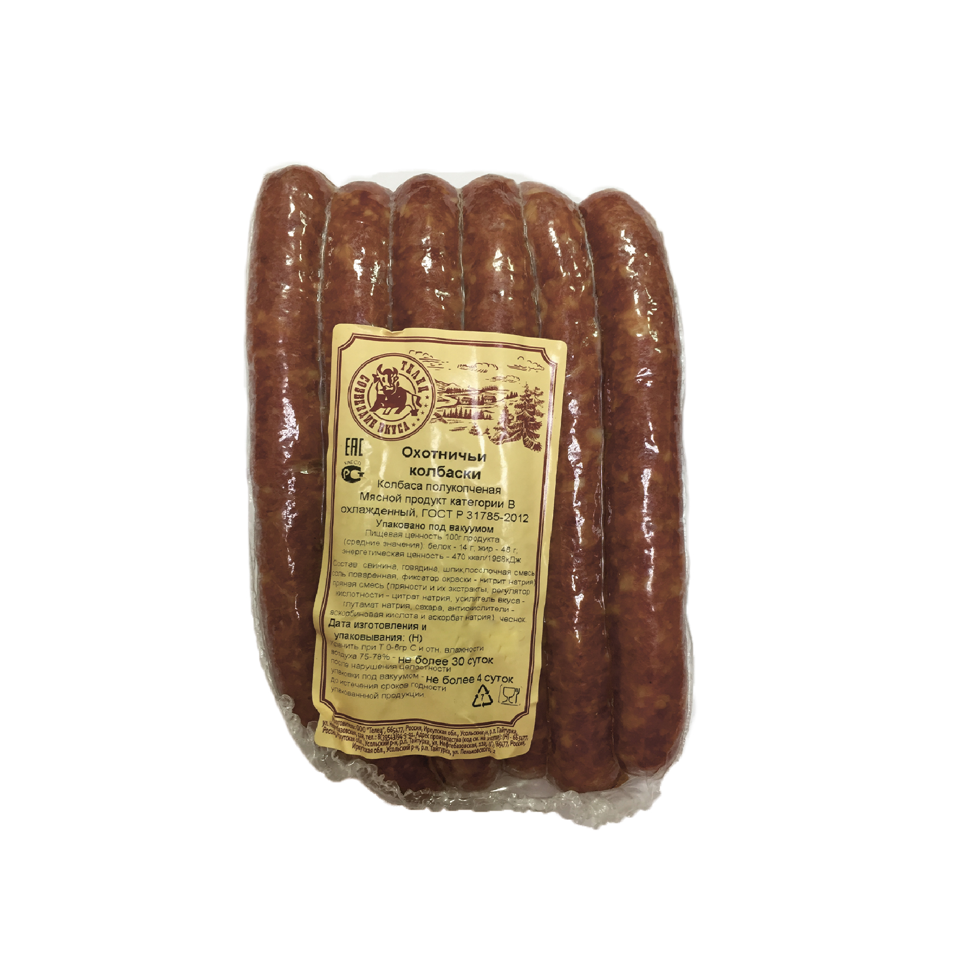 Колбаски Охотничьи п/к кат В вес Телец