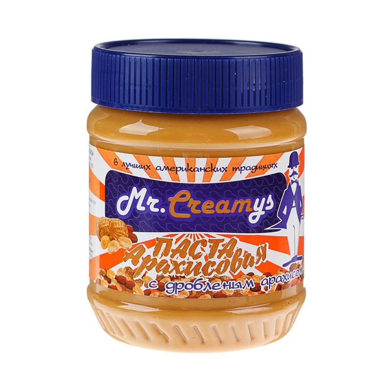 Хрустящая арахисовая паста Mr.Creamys с добавлением кусочков арахиса — это превосходный микс натуральной арахисовой пасты, с добавлением жаренного, дробленого арахиса, и не большим содержанием сахара, соли и растительных масел.
