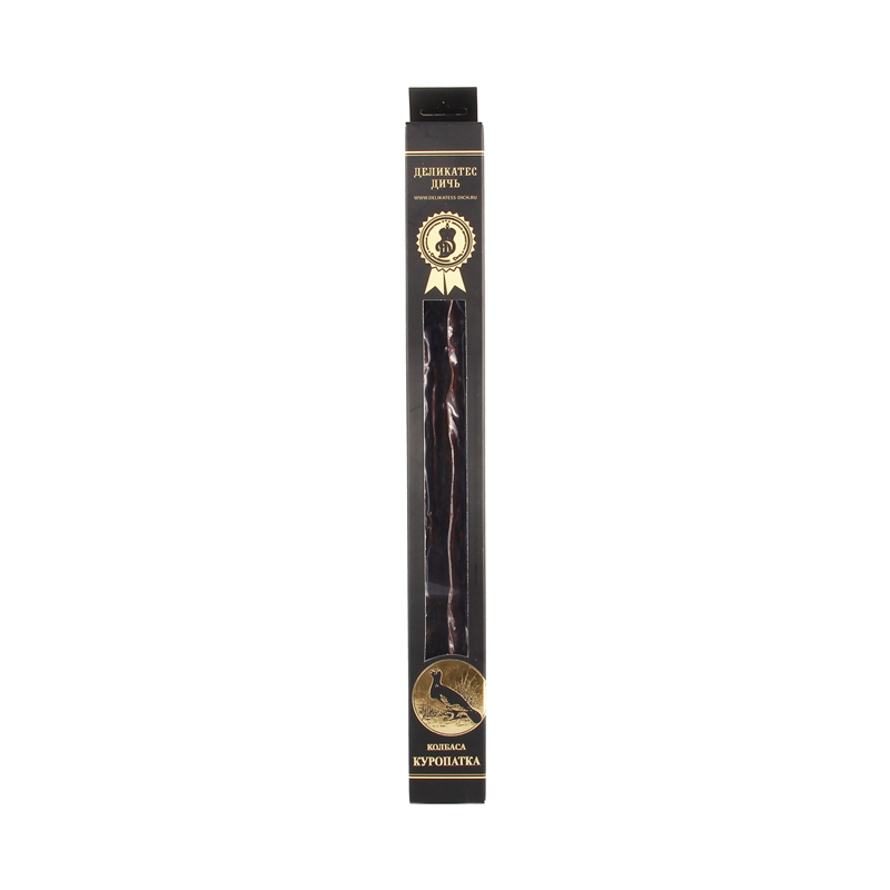 Колбаса с/к из куропатки в подарочной упаковке Деликатес дичь 300г Россия – данный продукт понравится всем без исключения, отличный деликатес универсального назначения. Минимум специи и умеренная мера соли придали колбасе деликатный и гармоничный вкус. Консистенция упругая, не слишком твердая. Рекомендуется подача в качестве самостоятельной закуски, а также как сопровождение к крепким алкогольным напиткам, красным и белым тихим винам.